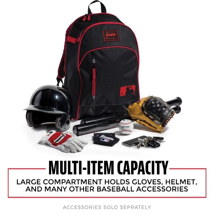 - LARGE STORAGE COMPARTMENT โ Spacious main compartment holds baseball helmet with face mask, batting gloves, fielding glove, cleats, and various accessories