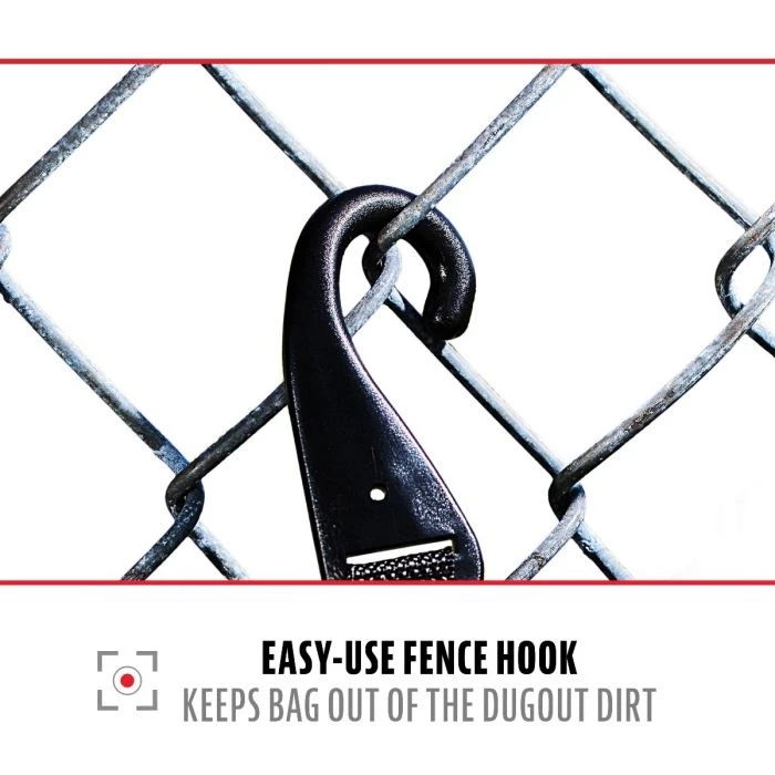 - EASY-USE FENCE HOOK โ Convenient j-style hook allows bag to hang on dugout fence for easy accessibility