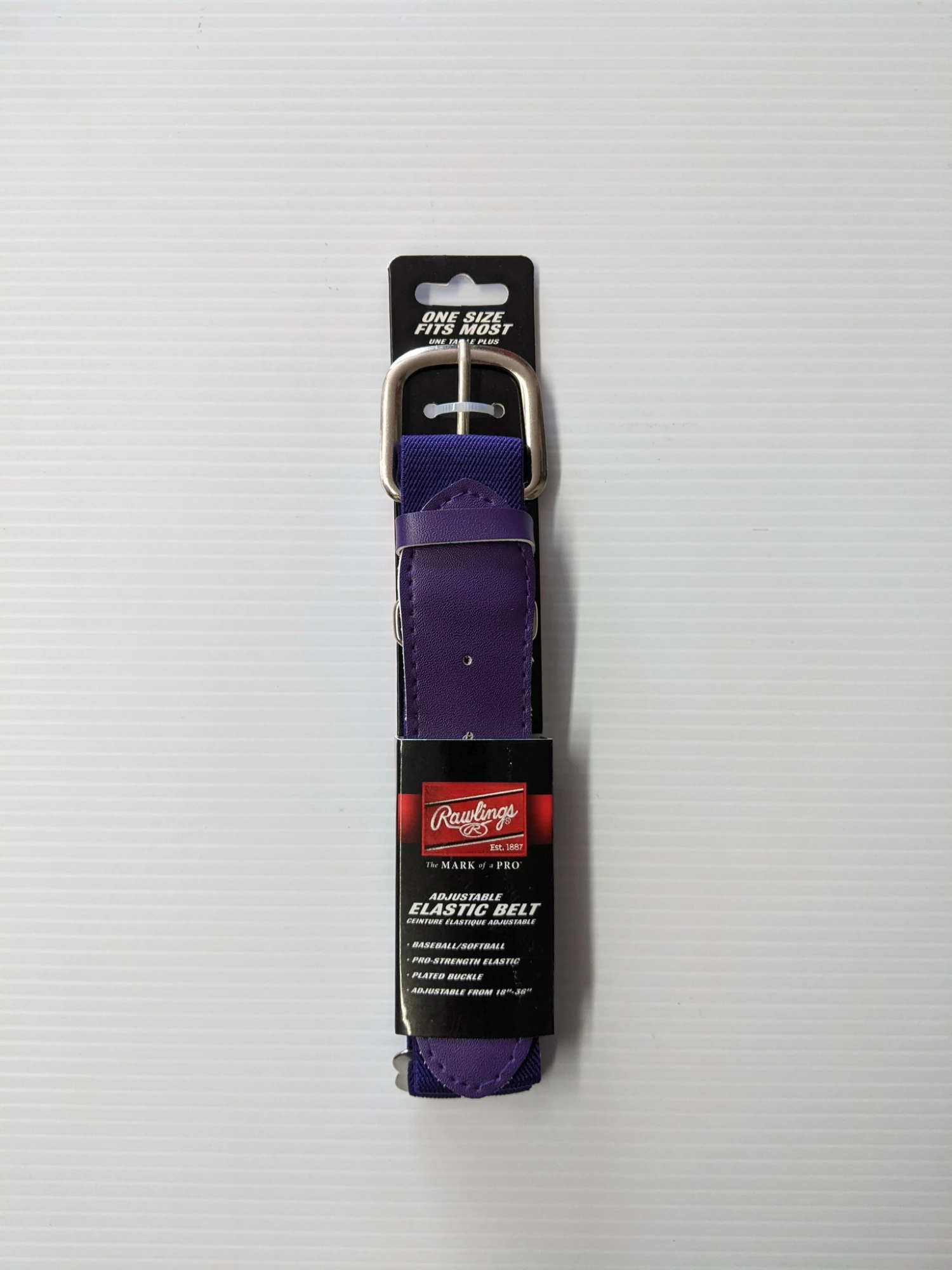 This Baseball Belt features a nickel plated buckle, elastic construction and TPR belt end for excellent durability in high-abrasion areas. The fully-adjustable design provides an ideal fit. The Rawlings oval R logo on the front tab adds style.