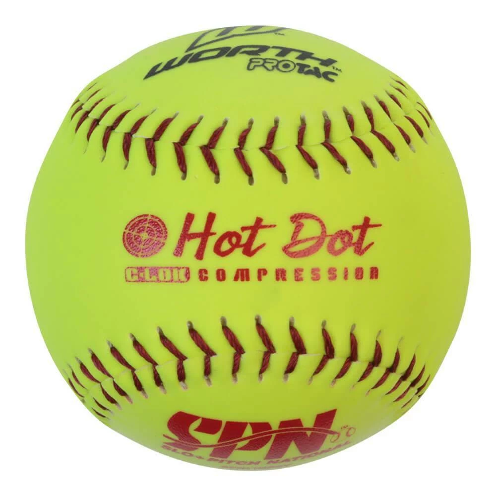 SPN 12″ Hot Dot, The Official Slo-Pitch Ball of Slo-Pitch National.. The ball boasts a bright yellow optic cover.