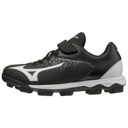 The Mizuno Select Nine JR is a top rubber molded youth cleat option suitable for all field types, while offering an EVA midsole for enhanced comfort and durability. Also features Mizuno Waveยฎ technology to reduce pressure, while adding comfort and stability during athletic movements around the diamond. Features one Velcro strap and faux laces toย add a convenient detail to do away with between-inning shoe tying!